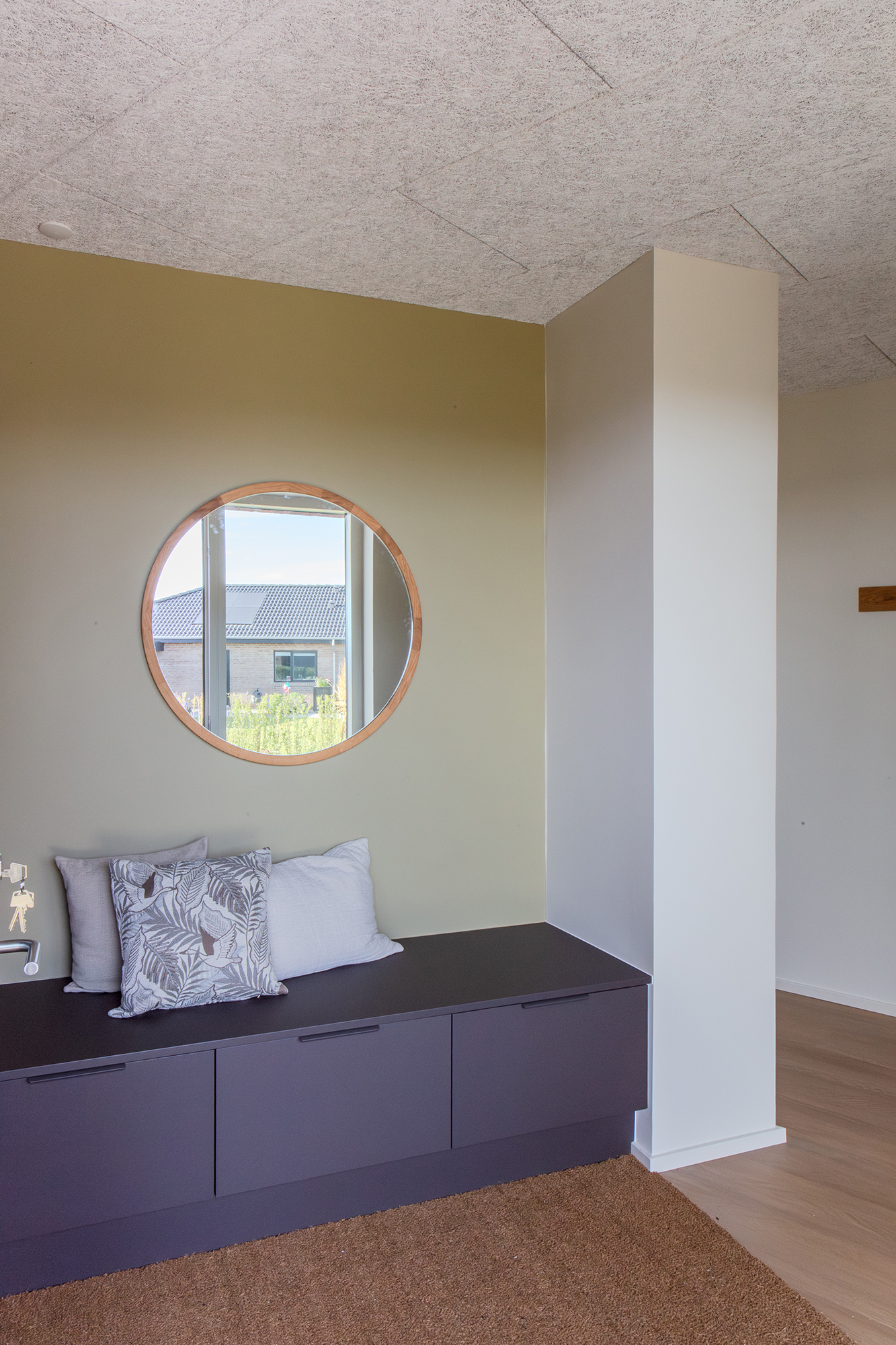 Træd ind gennem hoveddøren og se, hvordan murstenen er trukket med indenfor i den rummelige entré på 8,5 m² med en bænk og stor nedsunket kokosmåtte til øjeblikkeligt at skabe en varm velkomst, inden resten af husets vidunderlige rum åbner sig op rundt om hjørnet.