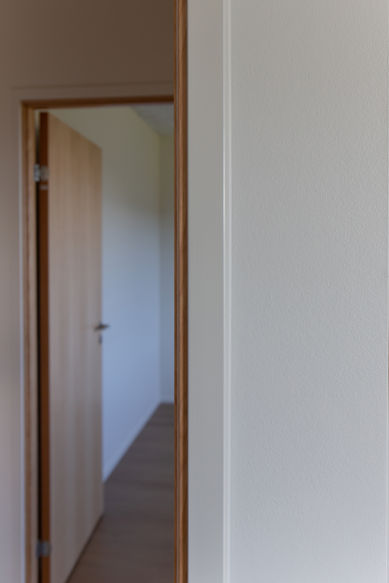 Bag stuens anden dør venter husets private paradis: soveværelset på 14 m², hvor den bløde, buede væg og indbyggede skabe omfavner rummet. Det forbundne badeværelse på 7 m² indbyder til dagligt velvære.